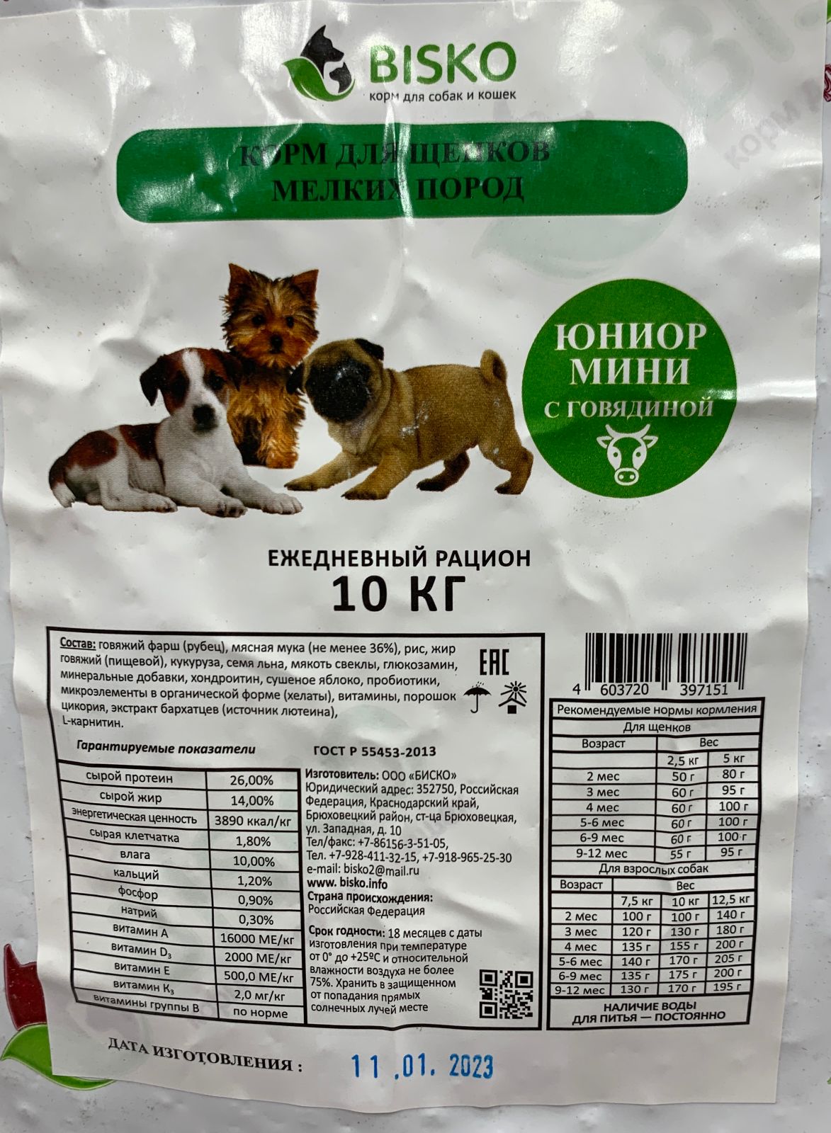 Рацион БИСКО МИНИ ЮНИОР разработан с учётом потребностей растущего организма щенков мелких пород (вес взрослой собаки до 12 кг). Баланс белков, жиров, углеводов и минеральных веществ обеспечит правильное развитие Вашего щенка. Размер гранул рассчитан на маленьких собак. БИСКО МИНИ ЮНИОР содержит говяжий рубец, обеспечивающий правильное формирование соединительной ткани и суставов.