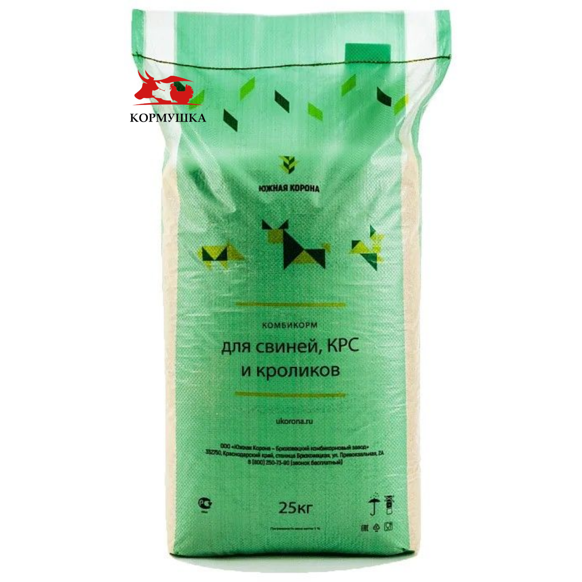 Ячмень, монокальцийфосфат, лизин, жмых подсолнечный, отруби пшеничные, мука известняковая, кукуруза, соль поваренная, витамин В4 60%, пшеница продовольственная, концентрат соевый, премикс витаминный, ферменты, антиоксидант, пробиотик.