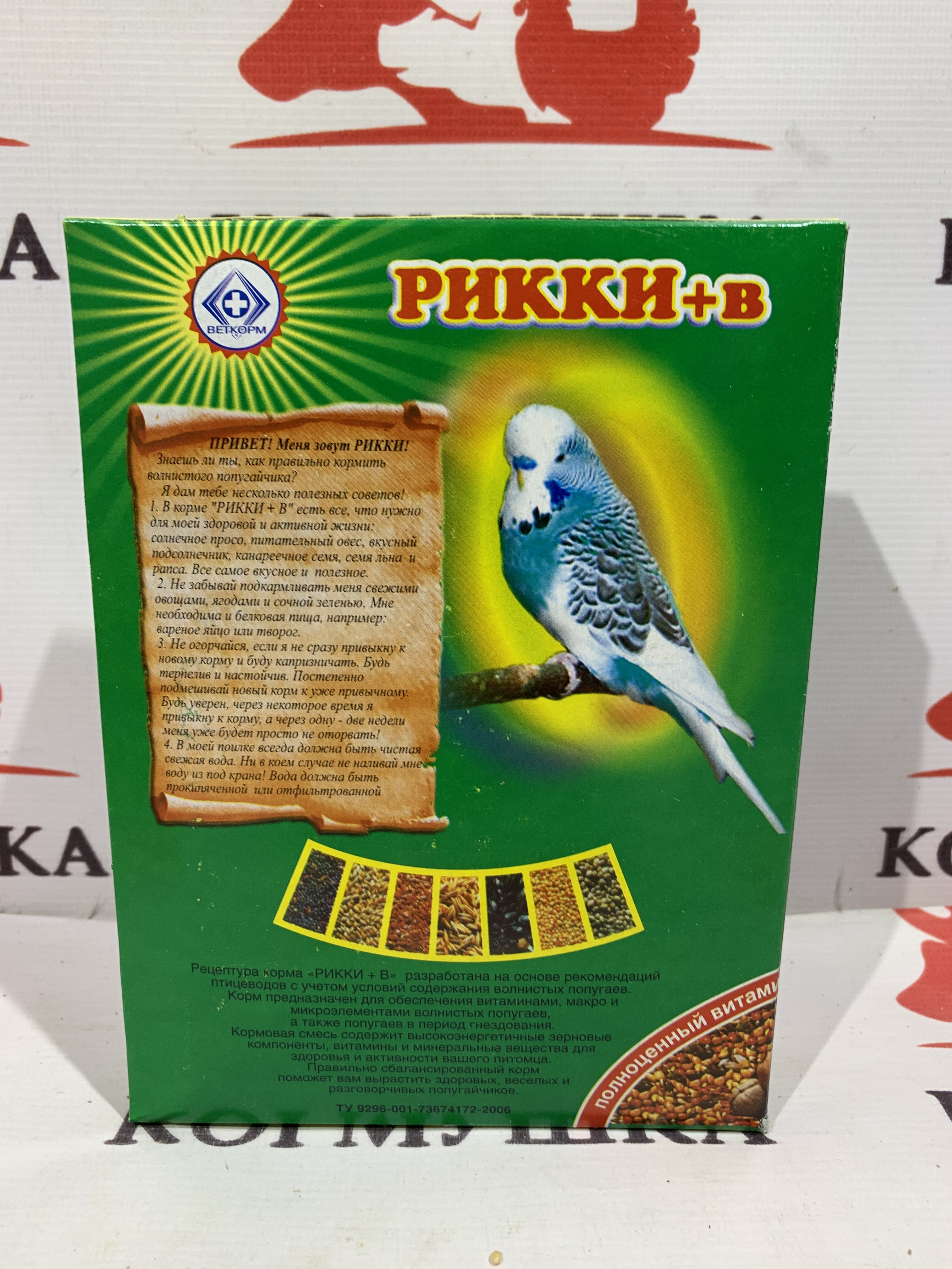 Полноценный корм для волнистых попугаев.