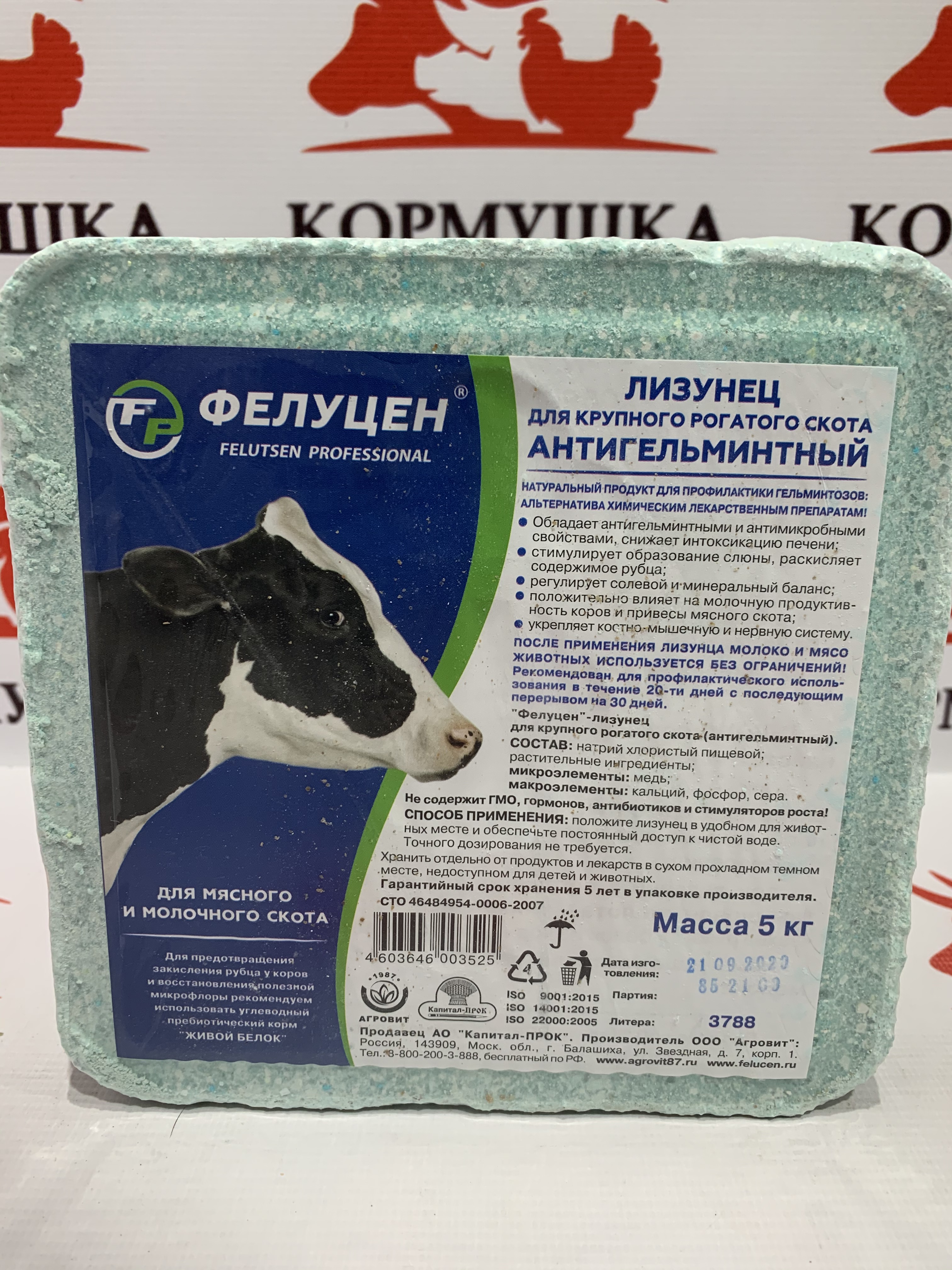 Антигельминтная сбалансированная комплексная кормовая добавка с минералами в виде прессованного солевого блока (лизунца) для коров, нетелей, быков и телят, которая: